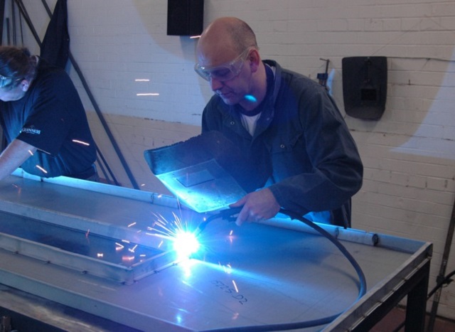 • Сварка. Все элементы полотна стыкуются, после чего производится их подгонка. На этом этапе происходит закладка изолирующих материалов, после чего полотно сваривается. В это же время производится сборка и сварка коробки. Затем полотно складывается с ней, и специалист проверяет все параметры, выставляет зазоры. После этого можно приваривать петли и монтировать фурнитуру.